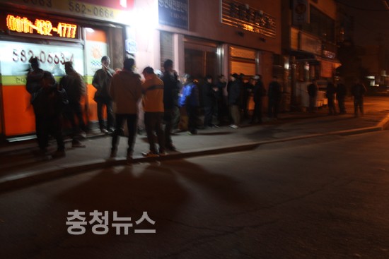 다섯 시 십오 분 정도가 되자 많은 사람이 왔다. 사람들은 오자마자 부부에게 인사한다. 부부는 얼굴 본 사람 명단을 적고, 오늘 들어온 일을 나누어 주는 역할을 한다. 부부는 이 자리에서 인력소개소를 운영한 지 18년째다. 처음 시작은 같은 건물 이 층에서 했다.