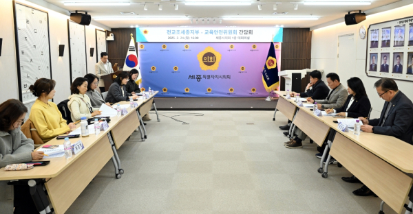 [충청뉴스 최형순 기자] 세종특별자치시의회 교육안전위원회(위원장 윤지성)는 24일 전국교직원노동조합(전교조) 세종지부와 간담회를 갖고 주요 교육 현안에 대한 의견을 교환했다.