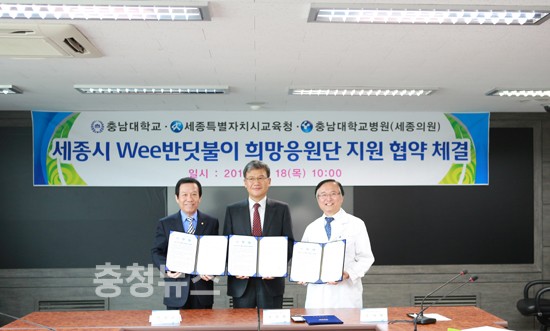 세종시교육청(교육감 신정균)은 18일 세종시 금남면에 위치한 충남대학교병원(세종의원)에서 충남대학교 정상철 총장, 충남대학교병원 송시헌 원장, 충남대학교병원(세종의원) 이준규 원장 등이 참석한 가운데 돌봄학생 응급진료체계구축과 관련한 업무협약을 체결했다.