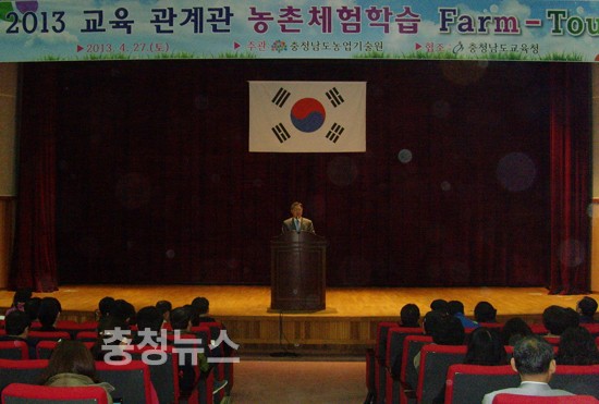 충남교육청(교육감 권한대행 부교육감 전찬환)은 27일 ‘2013학년도 자연과 함께하는 농어촌체험학습 운영’을 위한 도내 농어촌체험학습 운영학교 교원과 교육지원청 담당장학사 등 160여명을 대상으로 충남농업기술원과 연계해 담당자 연수를 실시했다.