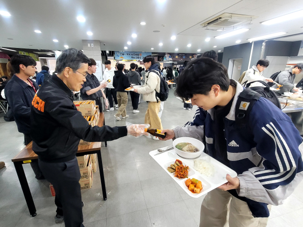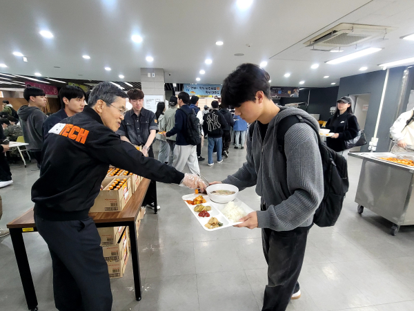 이날 유길상 한기대 총장은 학생들에게 간식을 직접 배식하며 “힘내서 시험 잘 보세요”라고 응원의 메시지를 전했다.