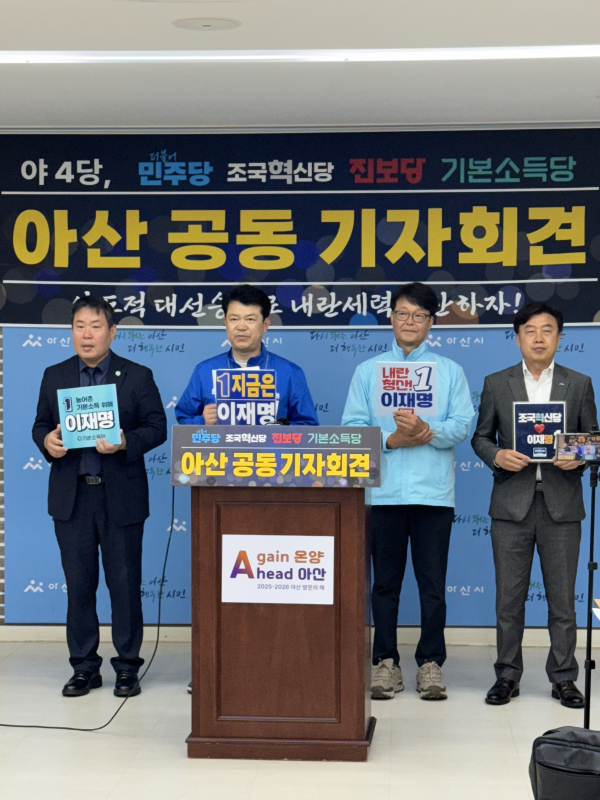 [충청뉴스 최형순 기자] 충남 아산지역 내 야4당(더불어민주당, 조국혁신당, 진보당, 기본소득당)은 22일 내란 세력 심판 및 사회 대개혁 실현을 위해 대선 승리의 연대와 협력을 선언했다.