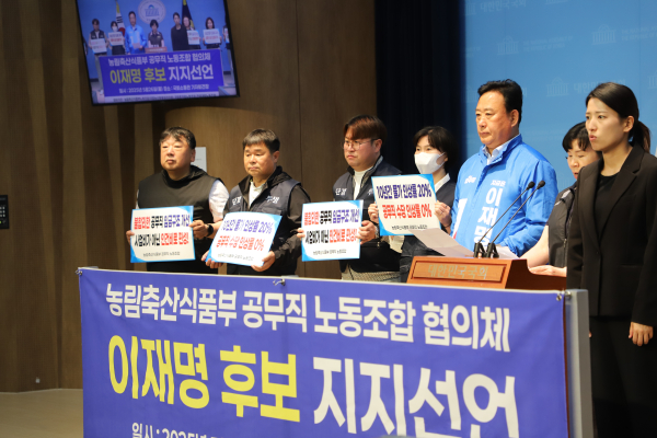 지지선언을 이끌어낸 어기구 위원장은 "대한민국의 공정한 노동과 국민을 위한 행정을 실현하기 위해 일해온 농림축산식품부 공무직 노동조합의 지지선언을 환영한다"고 했다.