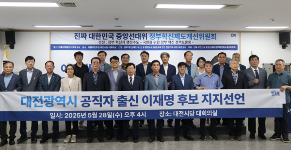 권 전 시장은 28일 대전시 공직자 출신 187인을 이재명 대통령 후보 지지 선언으로 이끌어 맨파워를 자랑.