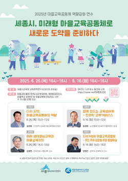 [충청뉴스 최형순 기자] 세종시가 오는 26일부터 미래형 교육생태계 구축을 위한 마을교육공동체 연수를 진행한다.