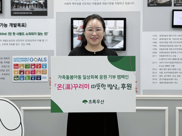 직원을 대표해 참여한 박미애 초록우산 세종본부장은 “이번 캠페인은 일상의 소비가 누군가에게 생명을 살리는 나눔이 될 수 있음을 보여주는 사례”라며, “더 많은 시민이 ‘온꾸러미 따뜻한 밥상’ 캠페인에 동참해 아이들의 건강한 성장을 응원해 주기를 바란다”고 전했다.