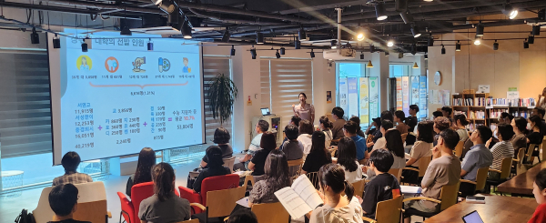 설명회에서는 대입을 위한 수시전형 인재상 갖추기 전략, 수능 최저 기준 확보, 무전공학과 확대 및 종합 전형을 위한 생기부 준비에 관한 설명 등으로 대입을 앞둔 학부모들에게 실질적으로 도움이 되는 핵심 내용을 전달했다.
