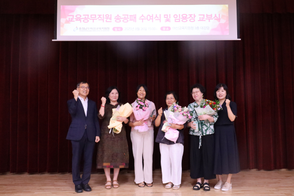 신세균 교육장은 “그동안 아산교육에 보내주신 헌신과 애정을 잊지 않겠다. 새롭게 아산교육의 가족이 되신 여러분을 진심으로 환영하고, 앞으로 학생들을 위한 따뜻한 마음과 책임감을 가지고 업무에 임해 줄 것”을 당부했다.