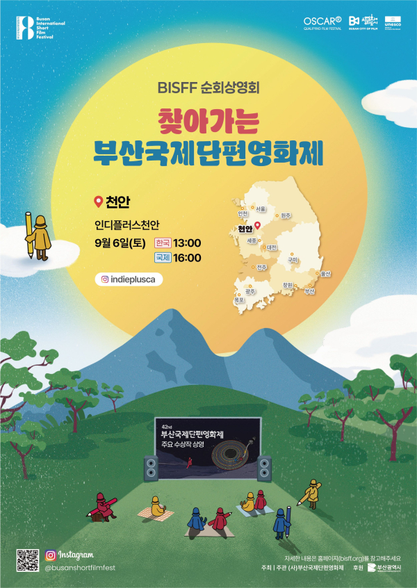 [충청뉴스 유규상 기자] ‘2025찾아가는 부산국제단편영화제’가 오는 9월 6일 천안시영상미디어 센터에서 열린다.