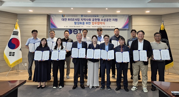 [충청뉴스 이성현 기자] 대전과학기술대학교는 소상공인시장진흥공단 대전세종충남지역본부, 대전상인연합회, 대전권 대학연합 산학협의체(13개교) 간 지역사회 공헌형 소상공인 지원 활성화를 위한 업무협약을 체결했다고 29일 밝혔다.