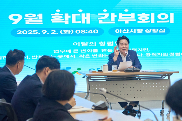 이날 오 시장은 9월 중 열릴 시의회 임시회의 시정질문을 언급하며 “저의 시정철학을 묻는 문항이 있는데, 저는 기회가 있을 때마다 늘 이야기해 왔다. 아산이 고향이고, 공무원으로 능력을 쌓아 마지막 순간은 지역발전을 위해 힘쓰겠다는 마음으로 여기까지 왔다”고 운을 뗐다.