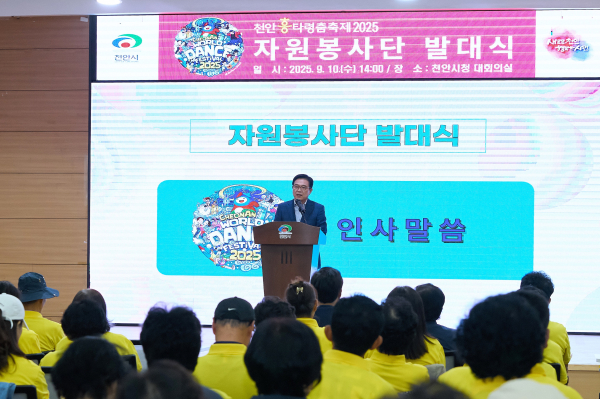 [충청뉴스 유규상 기자] 천안시자원봉사센터는 10일 시청 대회의실에서 ‘천안흥타령춤축제 2025’ 자원봉사단 발대식을 개최했다.