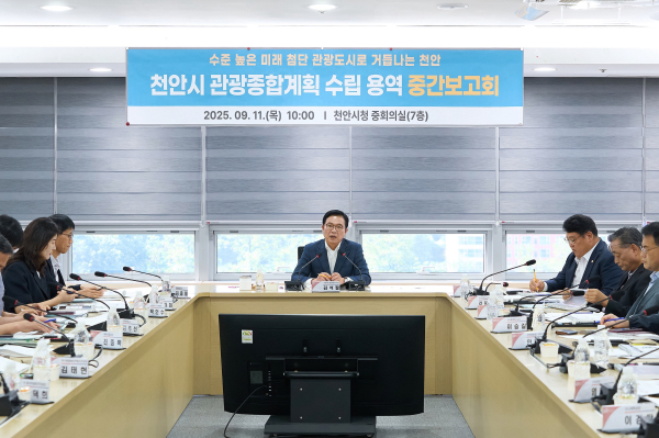시는 이날 제시된 의견을 반영해 계획을 보완하고, 11월 최종보고회를 통해 ‘2026~2030 천안시 관광종합계획’을 확정하고 스마트 관광과 젊은 감성이 공존하는 미래형 관광도시 천안으로 도약할 계획이다.