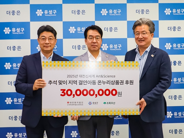 대전신세계 Art&Science가 기탁한 온누리상품권은 유성구 드림스타트 사례관리 대상자 및 지역아동센터 아동 등 300세대에게 10만원씩 전달될 예정이다.