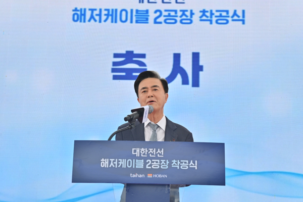 김태흠 지사는 “최근 AI산업 발전과 에너지 전환이라는 시대적 흐름 속에서 대한전선은 더 크게 성장할 것”이라며 “특히 세계적인 해상풍력 확대와 맞물려 전력용 해저케이블 수요가 급증하고 있는데, 이번 2공장 착공을 통해 대한전선이 확실하게 주도권을 잡게 되길 바란다”고 강조했다.