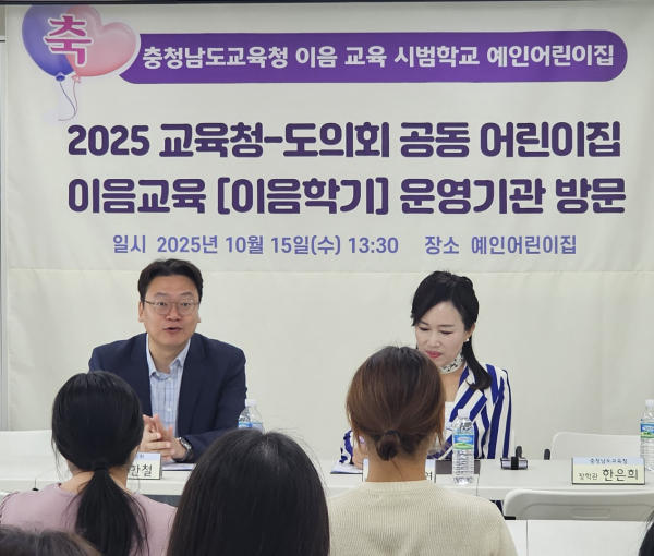 [충청뉴스 박영환 기자] 충남교육청은 15일 신한철 충남도의원과 함께 천안시 예인어린이집 이음교육(이음학기) 운영 현장을 방문했다고 밝혔다.