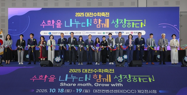 설동호 교육감은 “2025 대전수학축전이 방문객들에게 교과서에 갇힌 수학이 아닌 세상 어디에나 들어있는 수학을 체험할 수 있는 기회를 제공하고, 수학은 어렵다는 고정관념에서 벗어나 수학에 대한 긍정적 인식을 새롭게 할 수 있는 수학문화 대중화 확산 행사로 발전해 나갈 수 있도록 지속적으로 노력하겠다”고 밝혔다.