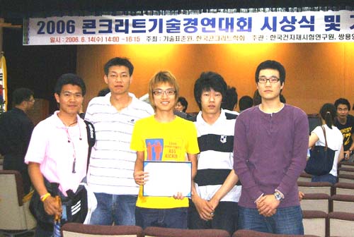 한국콘크리트학회에서는 이 모든 과정을 평가한 결과를 가지고 14일 우수한 성적으로 입상한 대학교 참가팀에 대한 시상식을 가졌다.