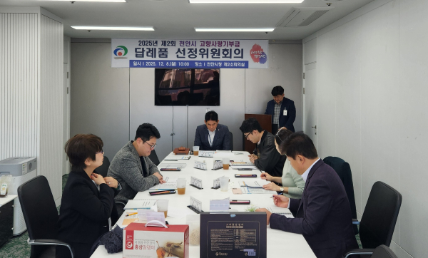[충청뉴스 유규상 기자] 천안시는 지난 8일 시청 제2소회의실에서 고향사랑기부금 답례품 선정위원회를 열고 내년도 답례품 28개 업체 74개 품목을 선정했다.