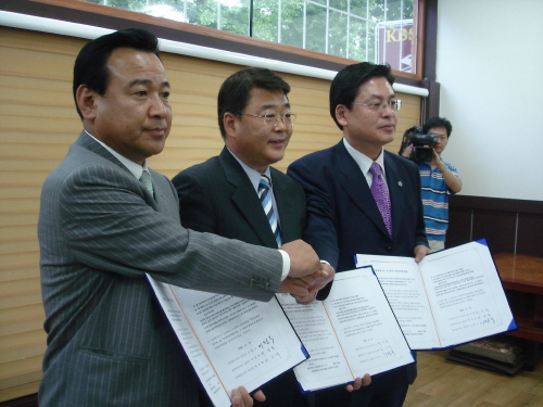 이들은 또 "3개 시.도는 행정도시 건설사업에 적극 참여하면서 이의 차질 없는 추진을 적극 지원하고 대덕연구개발 특구 범위를 확대하는 한편 행정도시를 중심으로 한 대전, 청주, 공주를 연결하는 충청권 광역교통망 체계를 구축해 나가겠다"고 덧붙였다.