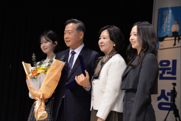 감사패를 받고 기념촬영하는 원성수 작가