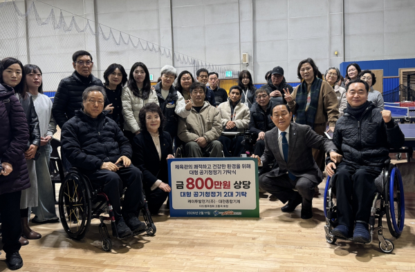 [충청뉴스 최형순 기자] 유성구장애인종합복지관(관장 이명순)은 11일, 고종국 후원회장으로부터 지역 장애인들의 건강한 활동 지원을 위한 800만 원 상당의 대형 공기청정기 2대를 전달받았다고 밝혔다.