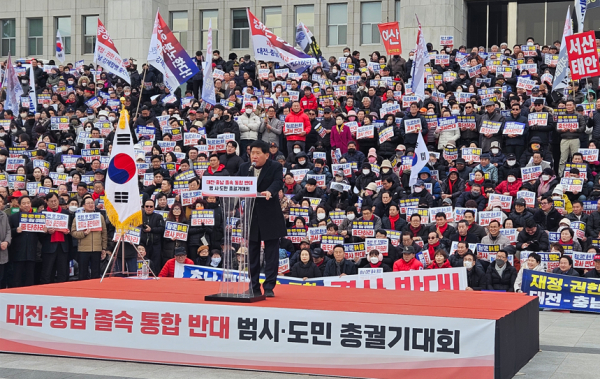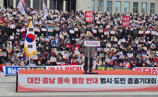 이날 총궐기대회에서는 김태흠 충남지사, 이장우 대전시장, 홍성현 충남도의회의장, 조원휘 대전시의회의장, 강승규 충남도당위원장, 이은권 대전시당위원장, 성일종 국회의원과, 충남과 대전지역 국민의힘 의원들과 지역 정치인들이 참여하여 '주민의 뜻을 짓밟는 정치쇼 중단하라'는 등의 구호를 외치며 비판을 쏟아냈다.
