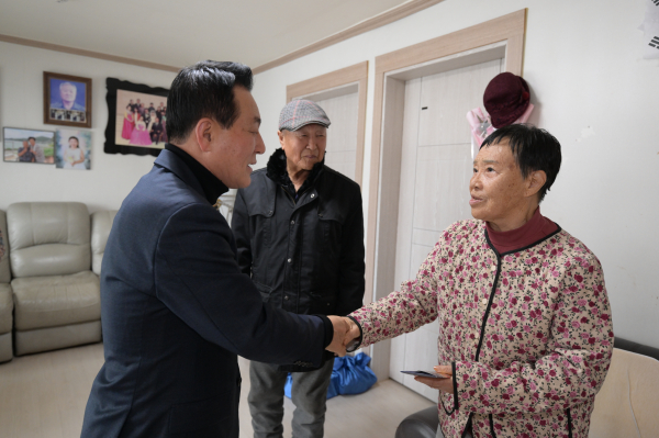 지난 24일 독립유공자 유족 어르신을 찾아뵌 백성현 논산시장은 건강 상태와불편 사항 등을 살피며 감사와 존경의 뜻을 전했다.