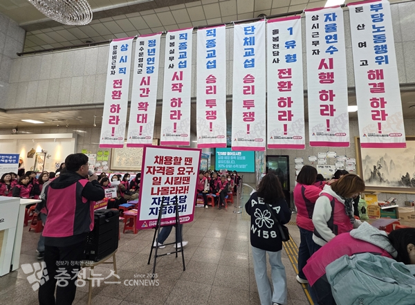 [충청뉴스 이성현 기자] 26·27일 이틀간 경고파업에 나선 대전학교비정규직노조가 대전교육청이 직종교섭에 시간끌기로 일관하고 있다며 대책 제시를 촉구했다.