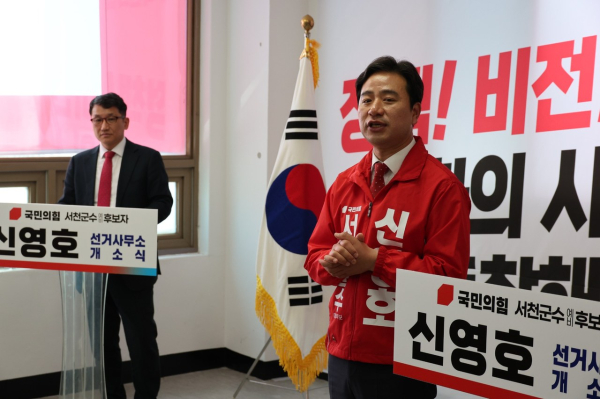 [충청뉴스 서천 = 조홍기 기자] 신영호 국민의힘 서천군수 예비후보가 2일 오후 3시 서천읍 충절로 71, 2층 선거사무소에서 개소식을 열고 본격적인 경선 행보에 돌입했다.