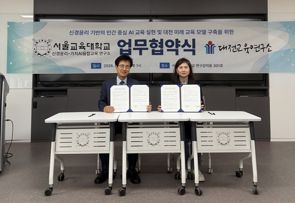 [충청뉴스 이성현 기자] 대전교육연구소는 서울교육대학교 신경윤리·가치AI 융합교육연구소와 ‘인간 중심 AI 교육 실현 및 대전 미래교육 모델 구축’을 위한 정책 자문 협약을 맺었다고 밝혔다.