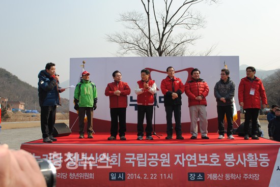 새누리당 전국청년위원회는 22일 오전 충남 계룡산 동학사에서 이인제, 이재오 의원을 비롯한 전국청년위원회위원 등 천여명이 참석한 가운데 국립공원 자연보호 봉사활동을 펼치며 충청권 표심잡기에 나섰다.