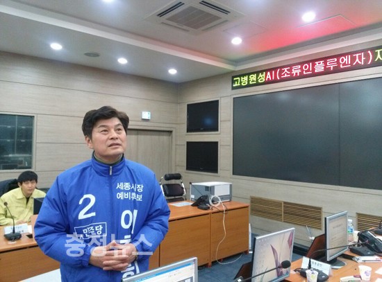 이춘희 세종시장 예비후보(민주당) 지난 8일 오후 세종시청에 마련된 AI 비상대책 상황실을 방문해 AI 비상대책 상황을 점검하고 근무자들을 격려했다.