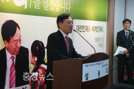 설동호 대전시교육감 예비후보는 8일 선거사무소 개소식을 갖고 본격적인 선거 활동에 돌입했다. 설동호 후보는 이날 행사에서 교육백년대계의 대전교육 성공시대 비전을 선포하고 “초.중.고 교사로 교육 현장경험과 대학에서 교수 및 총장을 역임하면서 산학협력단을 성공적으로 운영한 경험을 최대한 활용해 초.중.고.대학 연계교육으로 대전교육 발전을 이끌겠다”고 포부를 밝혔다.