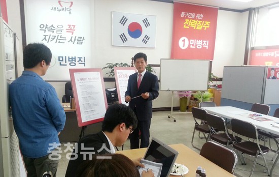 새누리당 민병직 대전 동구청장 후보는 20일 삼성동 자신의 선거사무소에서 공약발표회를 개최했다. 민 후보는 “동구를 발전시킬 5대 핵심공약과 그동안 예비선거 운동기간 각 지역의 시급한 민원사항을 총망라한 공약을 들고왔다”고 밝혔다.