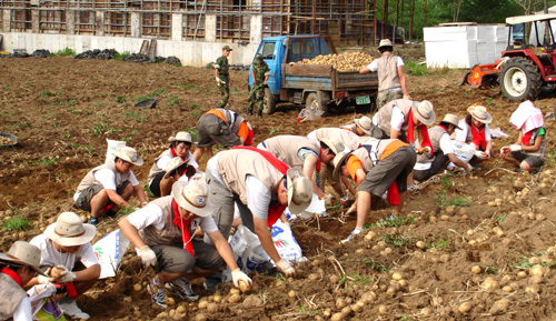 수해복구 봉사활동은 21일부터 4박5일간. 이번 집중호우로 큰 피해를 입은 강원도 영월군 주천면 일대다. 봉사활동 내용은 주천면사무소에서 지시하는 일을 집중적으로 했다. 주로 감자캐기, 벼일으켜세우기, 농로 보수, 수해로 무너진 하천정비 등을 하며 수해의 아픔를 같이 했다.
