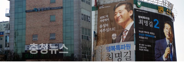 정의당에선 대전지역 시민사회운동가인 강영삼 前 대전시당위원장이 6일 오후 온천역 인근에 선거사무실 외벽에 기호4번 강영삼 현수막을 게시하면서 본격적인 선거전에 뛰어들었다.