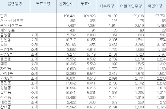이 같은 현상은 이번 선거에서도 그대로 나타나 결국 큰 차이가 아닌 동별로 나타난 작은 차이가 모여 선거의 승패를 가늠한 것으로 분석된다.