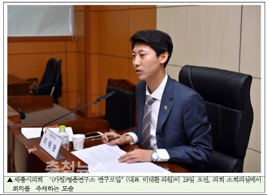세종특별자치시의회 의원 (가칭) 청춘연구소 연구모임 (대표 이태환 의원)은 지난 19일 시의회 소회의실에서 두 번째 회의를 갖고 세종시 청년일자리 창출 및 문화사업 발굴을 위한 연구모임의 명칭을‘청춘발전소’로 선정하고 힘찬 출항을 예고했다.