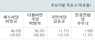 ▲ 서구갑 후보자들 득표 현황<출처-중앙선관위>