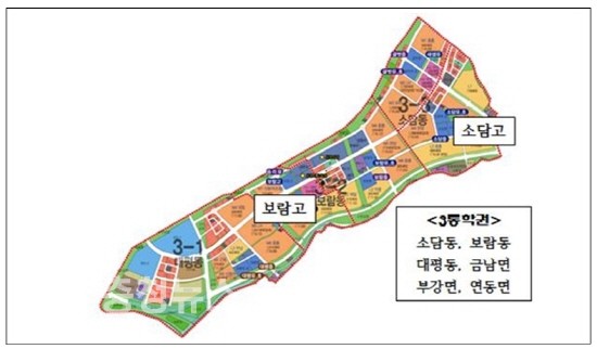 통학권은 세종시 생활권을 기준으로 타당성 연구 결과와 배정방법 정책연구 결과를 반영했다.