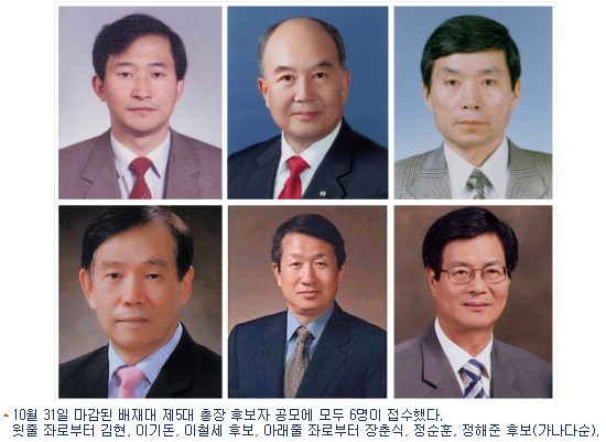 정순훈(54·배재대 총장), 정해준(58·배재대 생명환경디자인학부 교수) (가나다順)등이다.총추위는 11월 1일 오후