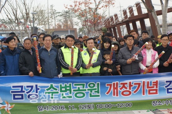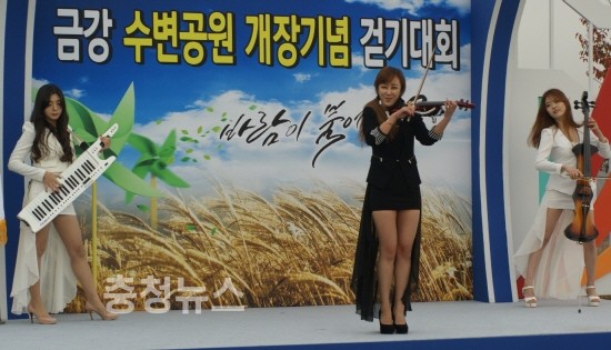 도시의 가치와 풍경을 만킷 할 수 있는 세종시 금강 수변공원에서 전자현악 스텔라, 퓨전국악 공연, 바람개비 조립 등의 이벤트와 함께 12일 개장기념 걷기대회가 성대히 개최됐다.
