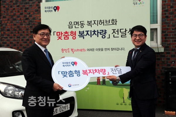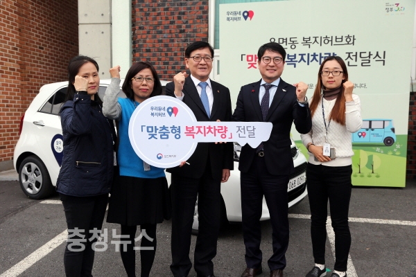 정진엽 보건복지부장관이 읍면동 복지허브화 맞춤형 복지차량 전달을 위해 23일 서천군 서면사무소를 방문했다.