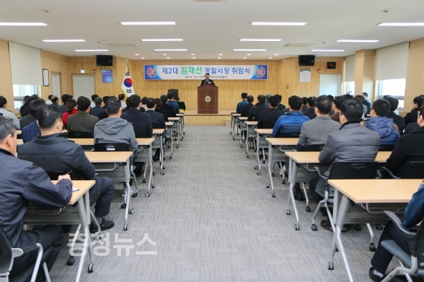 이번 취임식은 경찰서 대회의실에서 각 과장 및 직원 등 120여명이 참석한 가운데 진행되었으며, 취임식 식전 행사로 각 과장들과의 티타임 및 협력단체장 환담 행사를 가졌다.
