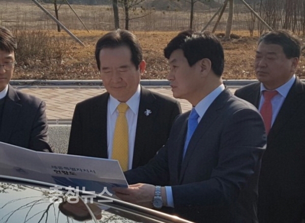 이춘희 시장과 신도시 국회청사 예정지 둘러봐