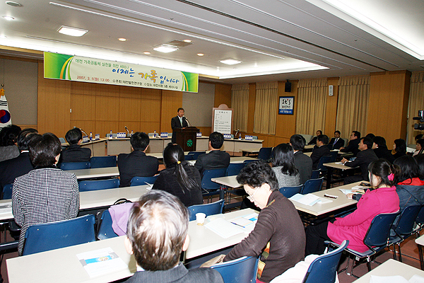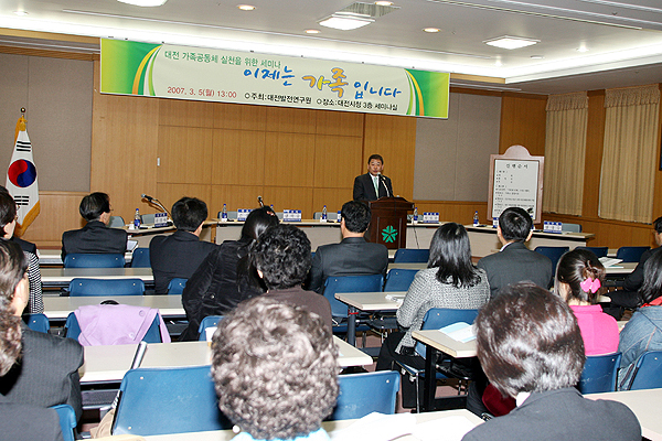 대전발전연구원(원장: 육동일)은 3월 5일(월) 오후 1시-오후 5시, 대전시청 3층 세미나실에서 미래지향적인 대전가족의 모습과 지역자치단체 및 기관들의 역할 등에 대해 다양한 의견을 나누고, 가족공동체의 경쟁력이 활성화되는 계기를 마련하고자 대전 가족공동체 실천을 위한 세미나 “이제는 가족입니다”를 개최했다.