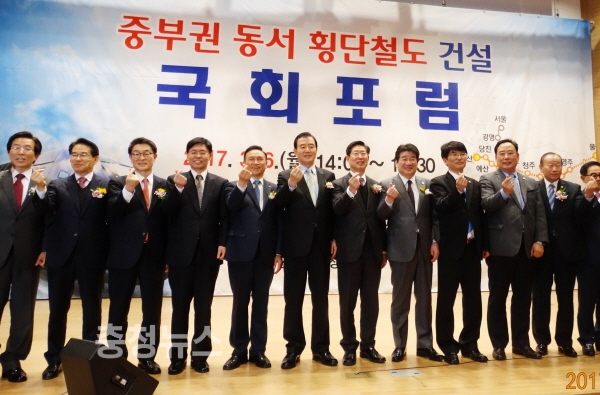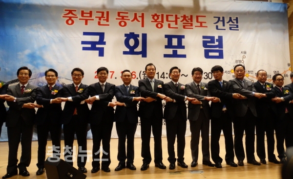 ‘중부권 동서 횡단철도 건설’ 대선 공약화를 위해 대선 예비후보 등 정계 주요인사와 국회의원, 12개 시군 지자체가 힘을 모았다.