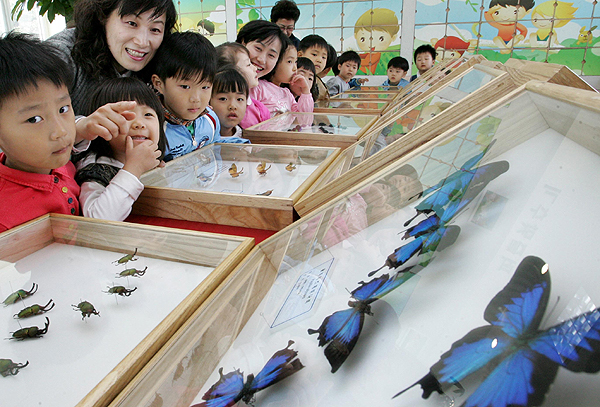 대전 동구 대청호자연생태관에서는‘2007국내외 곤충표본전시회’를 지난 7일부터 오는 6월 6일까지 2개월간 문을 열어 어린이들에게 큰 인기를 끌고 있다.