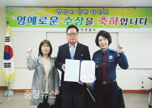 대전대덕경찰서 경무계(경감 이영종)는 29일 2층 소회의실에서 적극적인 진화 활동으로 대형화재를 예방한 시민 임상재(남, 43세)씨에게 감사장을 수여했다.